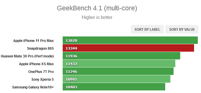 Hal itu membuat Snapdragon 865 berada persis di bawah Apple A13 Bionic dan menjadikanya SoC 5G tercepat untuk Android.