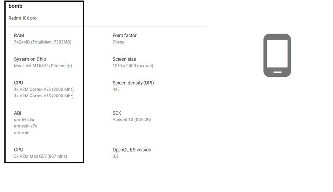 Redmi 10X 5G menampakan dirinya di Google Play Listing dan telah terdaftar menggunakan chipset yang kelasnya sedikit lebih rendah dari yang digunakan versi Cina yakni Dimensity 800. Sementara Redmi 10X Pro 5G masih tetap menggunakan Dimensity 820.
